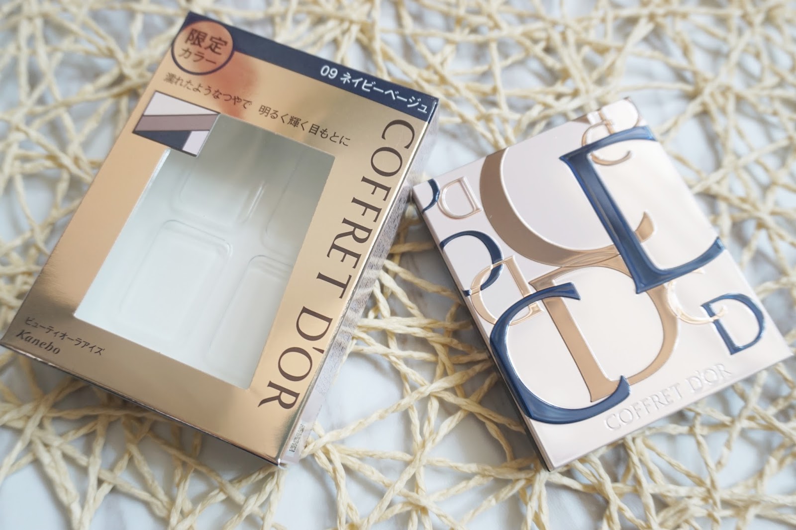 COFFRET D'OR BEAUTY AURA EYES 水漾亮澤眼影組,售價為HK320。於2017年秋冬期間推出了兩款限量版的眼影組合,當中包括:08 Bordeaux Brown 及09 Navy Beige。由於Carmen已經擁有很多啡tone的眼影,所以這次選擇了09 Navy Beige。